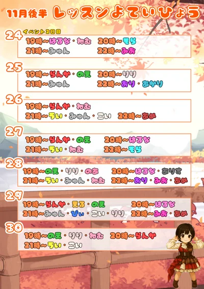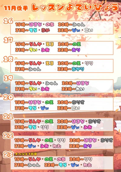 11月後半のレッスン予定表ができました!