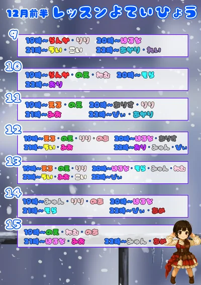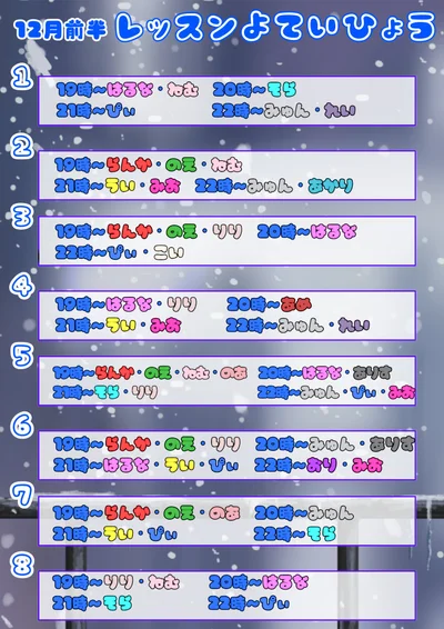 12月前半レッスン予定表ができました❣️