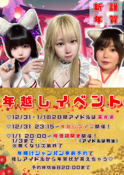 12/31は23:15より年越しライブ開催!