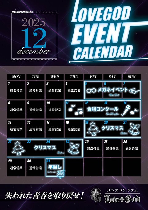 固定Love☦︎God【池袋メンズコンカフェ】@LoveGod6645·◤◢◤◢◤◢◤◢◤◢◤ ◢ ⛄️12月のラブゴッド⛄️ ◤◢◤◢◤◢◤◢◤◢◤ ◢ 🤓メガネイベント😎 12/5(金)〜12/7(日) ・キャストはメガネ着用 ・推しのチェキor写メ1枚無料📷 🎤合唱コンクール🎶 12/11(木)〜12/14(日)さらに表示410277