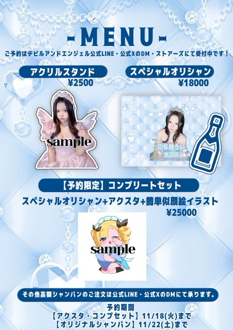 喜多川うい🔱11/29生誕祭デビエンメイドさんがリポスト九尾ねつき🍁@でりぽけメイド@netuki_delipo·23時間こちらアクスタ・コンプセットのご注文が本日までとなっています〜‼️‼️ とーーっても豪華な特典が付いています✨ 私も似顔絵描いて欲しいです… 初めての生誕祭グッズ&オリシャン是非GETして下さい🏴☠️引用GothicBar デビル&エンジェル@devil_angel_oki·11月8日🩵イベント告知🩵 🔱喜多川うい生誕祭 2025🔱#デビエン 【11月29日(土)20時~翌2時】 ♥生誕チェキ付海賊カレー🏴☠️ ♥メイドリンク2杯でランチェキが引ける😈 デビエン公式LINE,X,ストアーズにてご予約受付中 ⚠️アクスタ・コンプセット【11/18(火)23:59】まで ⚠️オリシャン 【11/22(土)23:59】まで18370