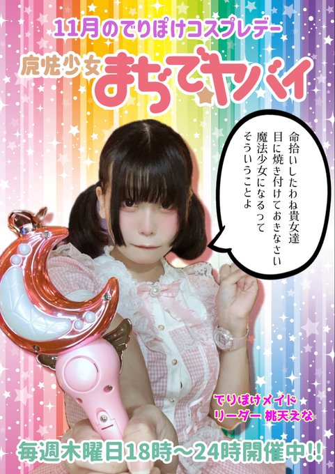 メイドカフェでりしゃすぽしゃけ@deli_poke·🌷11月20日(木)18:00〜24:00🌷 木曜日は魔法少女Day🪄✨ ふわふわ魔法で、あなたの疲れをとばしちゃうよ💞 🌸本日のお給仕メイド🌸 ⏰18時 沖田ひめの@himeno_delipo 一ノ瀬あま@Ama_devi_oki ⏰19時 明星ふりる@huriru_devi_oki ⏰20時 桃天えな@ena_delipo #コンカフェ #沖縄15116