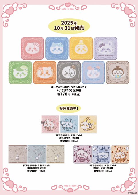 あか のばら🌹でりぽけメイドさんがリポストまじかるちいかわストア【公式】@magi_chiikawa·🎀#まじかるちいかわストア \💌新商品のお知らせ💌/ 10月31日(金)より 『まじかるちいかわ タオルハンカチ(小さいやつ)』全9種 が、まじかるちいかわストアに登場いたします💝 20cm×20cmの使いやすいサイズ🫧 ぜひチェックしてください🪄2402,35218万