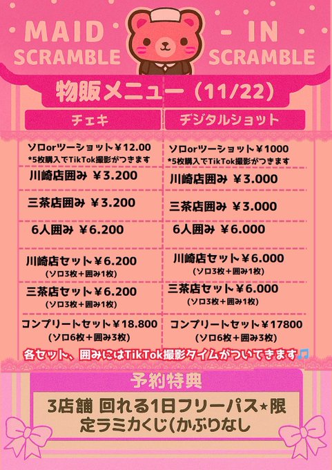 幻魔皇帝 鳳 坂本 雀春 🎃 三軒茶屋さんがリポスト水沢 由生乃@ynmn32yukino·11月21日メイドインスクランブルいよいよ明日です 混乱防止のため、TIGETで受付をお願いします。 ご予約はまだまだ受付中! ユナマノは予約特典が豪華なので、推しが出演してなくてもライブやその後のご帰宅がお得に楽しめます🎀 予約はメンバーへのリプか公式DMで! #ユナマノミニ #メイドインスクランブル5:00引用made in SCRAMBLE@a_live_akb·11月2日【お知らせ】 当日受付での混雑を防ぐため、予定のみTIGETでの受付もすることになりました。 もちろん当日でも入場可能ですが、受付でお目当てを聞かれるのがちょっと嫌だなという方にはTIGETでの予約をおすすめします! https://tiget.net/events/440851 ※お支払いは当日現金のみとなります。581,463