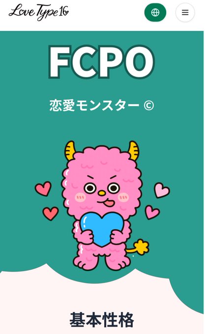 はるきP໒꒱AnDia@AnDiaHaruki·これめっちゃ合ってるかもw 私の恋愛タイプは FCPO です!あなたの恋愛スタイルもテストしてみませんか? https://lovetype16.com/result/FCPO197