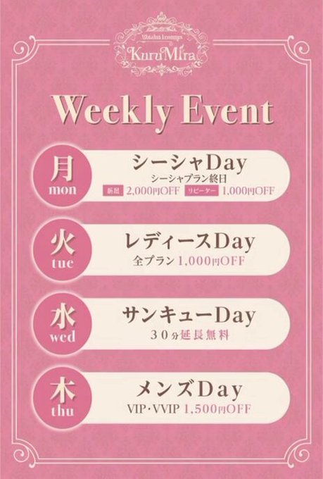 Kuru Mira(くるみら)歌舞伎町シーシャコンカフェ@Kurumirage·🌸はるかバースデーEVのお知らせ🌸 12/6(土) はるかバースデーイベント開催💎@HARUKAkurumira 当日は特別な特典やイベントシーシャ、オリシャンをご用意しております💭 騎士様のご来殿お待ちしております❣️0:0625111