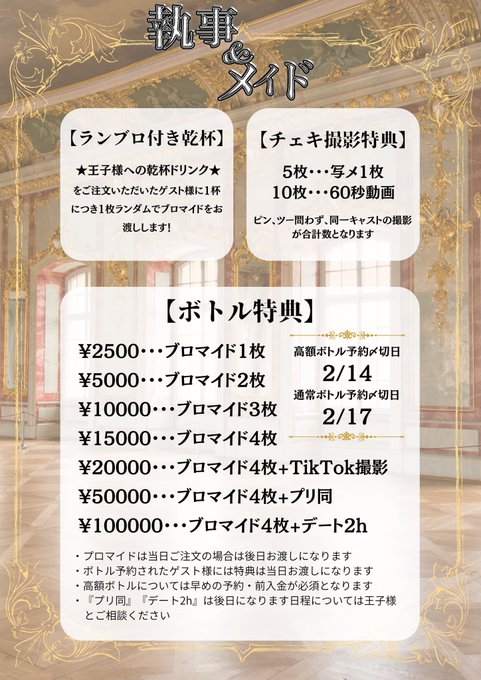 Adel☆Stern -エーデルシュテルン-@adel_stern_·🌟2月後半(16-28) 王子様リスト🌟 〔 📍イベント 〕 【20日22日】メイドEV 【21日23日】執事EV ✧︎2月後半もゲスト様のご来城お待ちしております✧︎ #男装カフェ #男装コンカフェ #大阪日本橋134