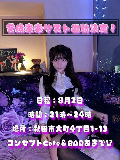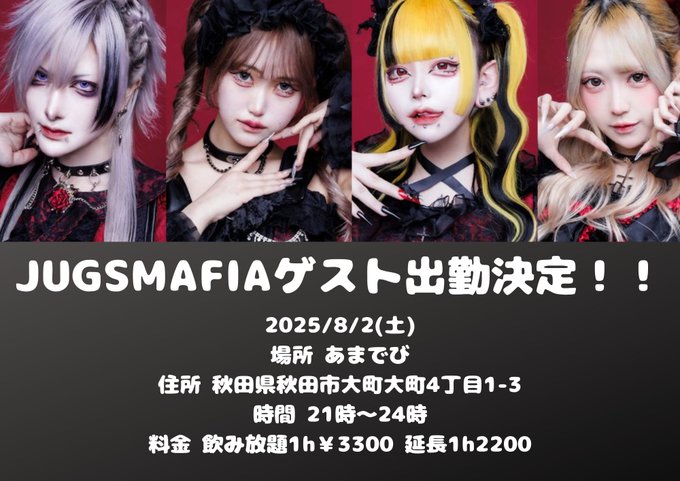 あまでび@Cafebar_amadevi·お知らせ 8/2 秋田オタク大作戦の後にあにゃるさん事、愛成来来さん @raiplast とJUGSMAFIA @jugs_mafiaさんがあまでびゲスト出勤して頂く事になりました‼️ ライブに来た方もそうでない方も是非遊びに来てください❗あにゃるさんと他1人16339,272