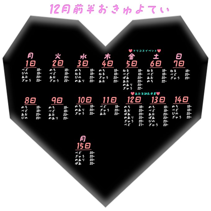 固定Moi 広島コンカフェ@Moi_nakanohito·🎀12月前半の出勤予定🎀 ✨5.6日フリコスイベント✨ ✨12.13日あお生誕&卒業✨ #コンカフェ #広島コンカフェ #広島 #moi #広島メイド161