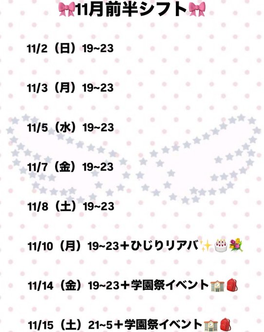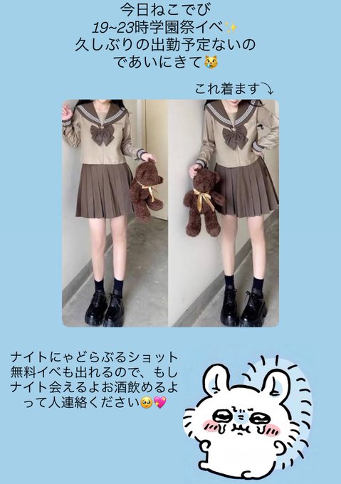 ♔れい†にゃどらぶるさんがリポストにゃどらぶる出勤情報@nyado_cafe·━━━━\11/7(金)~11/9(土)/━━━━ 🎀にゃどらぶる学園祭🎀 ━━━━━━━━━━━━━━━━ 今年のテーマは“放課後のときめき”💞 キャストが制服や文化祭コーデでお出迎え🩰 おしゃれでちょっぴり甘い学園祭気分を楽しんでね🌸27387