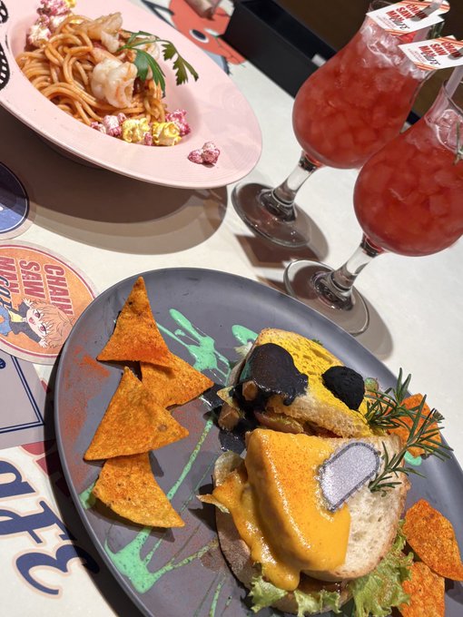 ぴゆ@cp_piyu·18時半から23時までいましゅ! 今日も今日とて自撮りが盛れないのでかわりにチェンソーマンカフェ行った時のやつです😭19541