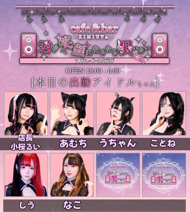 君が笑顔になるなら唄いたい【キミウタ】@Cafebar_kimiuta·Cafe&bar 君が笑顔になるなら唄いたい ㊗️1周年イベント㊗️ 本日のアイドルキャストは🎤 18-22 うちゃん@uchan_kimiuta 19-23 ちゃま@hamster_kimiuta 22- 小桜るい@Kozakura_rui 23- ことね@Kz_zo0 皆様のお越しをお待ちしております❕ #ミナミ #大阪 #宗右衛門町311,037