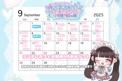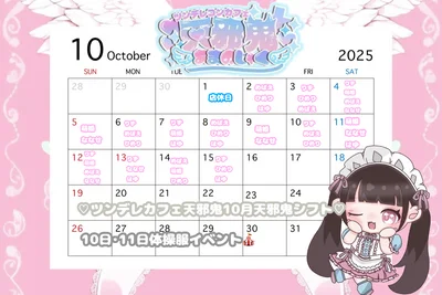 ツンデレカフェ天邪鬼、10月前半シフトと10月前半のイベント情報です( ᐢ. ̫ .ᐢ )♡ 体操服イベントは要チェック!