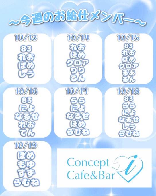 らむね@高崎コンカフェiさんがリポスト高崎コンセプトカフェ&バー i@ccb_takasaki_i·🫶🏻今週の出勤情報🫶🏻 いつもご帰宅ありがとうございます!!! 今週のお給仕メンバーをお知らせいたします📢 みなさまのご帰宅をお待ちしてます♡ ※出勤メンバーは変更になる場合がございます。 #コンカフェ #群馬 #高崎11210