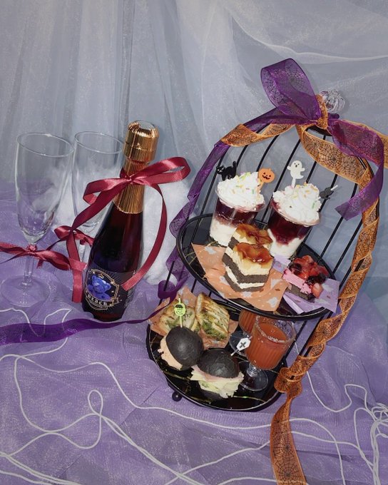 高崎コンセプトカフェ&バー i@ccb_takasaki_i·【アフヌンセット☕️】 メイドさんお手製! ハロウィンをイメージして作った食べ物が盛りだくさん👻 セットで【シャンメリーブラック】も付いてきます🥂 ※アフヌンセットは1日3セットのみの販売となります。 #コンカフェ #群馬 #高崎83