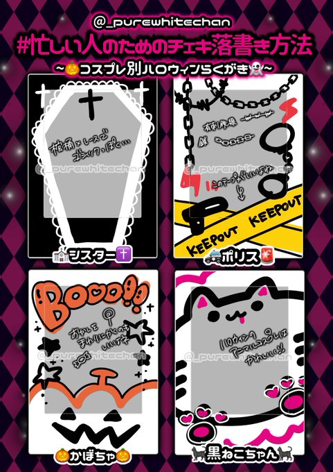 クロア@高崎コンカフェiさんがリポストぴゅあぴゅあほわいとめろ@10/10.11生誕@_purewhitechan·チェキのラクガキが苦手な人のための ささっとそれなりのクオリティになる 【♡ #チェキらくがき方法 28♡】 ┈┈┈┈┈┈┈ 〜🎃コスプレ別ハロウィンらくがき👻~ ハロウィーン関連のらくがき過去にも載せてるのでハイライト要チェック!! ┈┈┈┈┈┈┈さらに表示2443,98319万