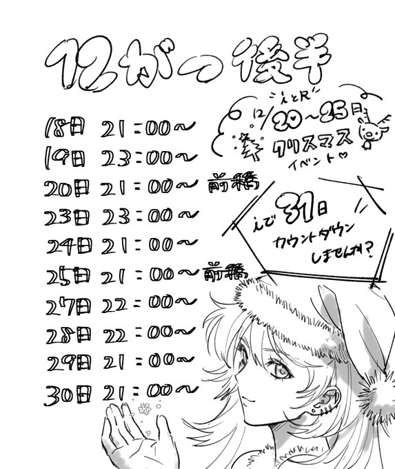 固定らむね@高崎コンカフェi@ccbi_ramune·らむね12月後半のお給仕予定🗓 12月は1周年&Xmasイベや年末カウトダウンなどイベント盛りだくさん♪ 沢山のご帰宅お待ちしております🎄497