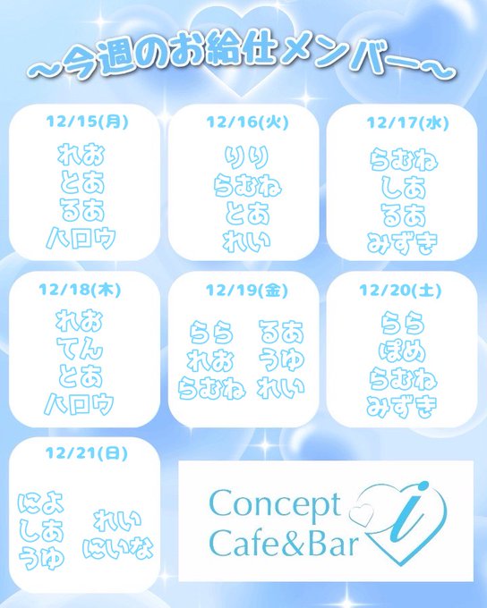 固定高崎コンセプトカフェ&バー i@ccb_takasaki_i·🫶🏻今週の出勤情報📷 いつもご帰宅ありがとうございます!!! 今週のお給仕メンバーをお知らせいたします📷#i #コンセプトカフェアンドバーi #conceptcafeandbari #コンカフェ #conceptcafe #群馬コンカフェ144