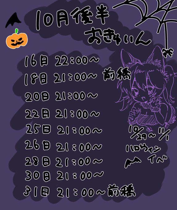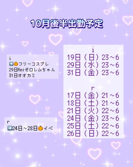 もゆ@高崎コンカフェi@ccbi_moyu·10月後半出勤予定です💜💛 i 10/29〜11/1🎃イベント r 10/24〜10/28🎃イベント イベント盛り沢山なのでぜひ!! #コンカフェ #ハロウィン4160