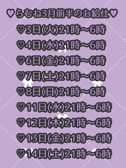 固定らむね@高崎コンカフェi@ccbi_ramune·らむね2月前半のお給仕予定 ご帰宅お待ちしております🤍299