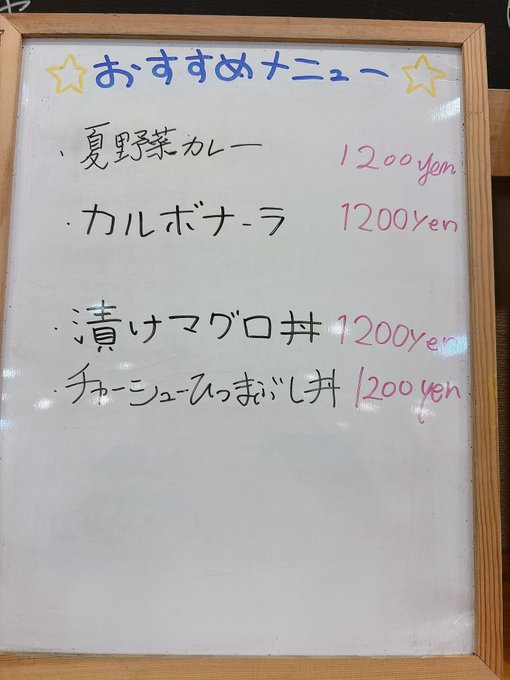 パレットメイドカフェ@PaletteMaidcafe·7/17(木) いちご色、アリスブルーです🥳 おすすめメニューは 🍛夏野菜カレー 🍤てんぷら定食 🍝舞茸とベーコンのクリームパスタ です! 天気が悪いですがお待ちしております☔️29754