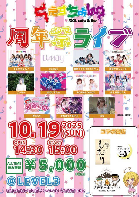 らみあ🔰くえすちょん?さんがリポストIDOLcafe&Bar くえすちょん?|コンカフェ富山|アイドルライブ毎日開催中🎤@Bar_question_·8月13日(水)15日(金) 16日(土) 🏮さきぞーキッチンさんゲスト出店🏮 【 @skz_kitchen227 】 キッチンカーでおなじみの #さきぞーキッチン さんがくえすちょん?にゲスト出店です☆ 🎐8/13.14は浴衣イベントも開催決定🎐✨ 皆様のご来店おまちしております♬ #くえすちょん #富山 #コンカフェ7171,583