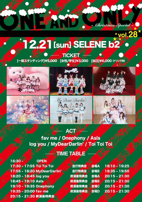 11/28.29生誕♡たるとてんちょ!♡ 🌟さんがリポストToi Toi Toi【Official】@toitoitoi_staff·🎊\出演情報解禁/🎉 『ONE AND ONLY vol.28』 〜 Christmas Special 〜 📅 12/21(日) 🕰️Open 16:30 /START 17:30〜 📍白金高輪SELENE b2 🎤 出演 17:30- 📸 特典会 18:10- 平行A 👗衣装 クリスマス衣装🎄 🎫チケット情報 プレリクエスト抽選先行 https://l-tike.com/oneandonly/ 〜12/7(日)23:59までさらに表示13413,419