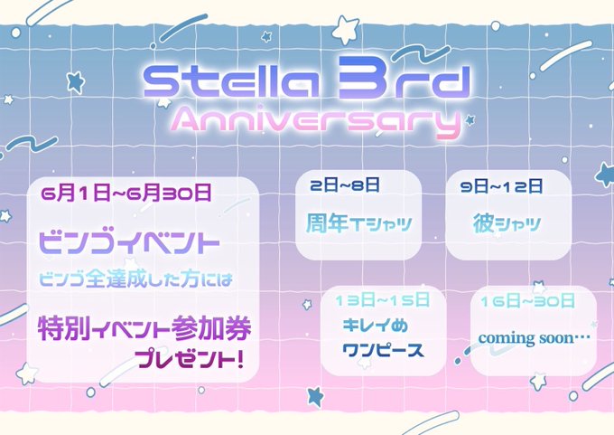 るなさんがリポストcafe&bar Stella@Stella20226·来月でStellaは3周年🎉 今年は、なんとビンゴが3種類も登場! 1日~8日にご来店いただくと、1マス自動で埋まるミッションもあります🫢 全マス制覇を目指す方は、ぜひご来店ください🌟 周年限定の特別メニューもご用意しています❕ 詳細は画像をご覧いただくか、キャストまでお気軽にお尋ねください!12154,734