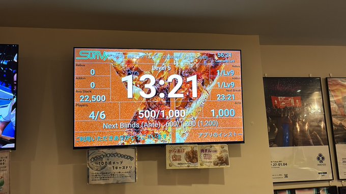 SECOND NUTS♧セカンドナッツ♤ポーカー♡名古屋 栄@SecondNutsPoker·🐿️セカ🔟🐿️ 現在12名様で進行中👥🔥 👥 12/17E Ave. 59,166 Blinds 600/1200 レイトレジスト21:30まで1時間きっております‼️ げきあつです‼️🔥 リング2-5 1卓進行中です‼️ たくさんのご来店お待ちしております♡514