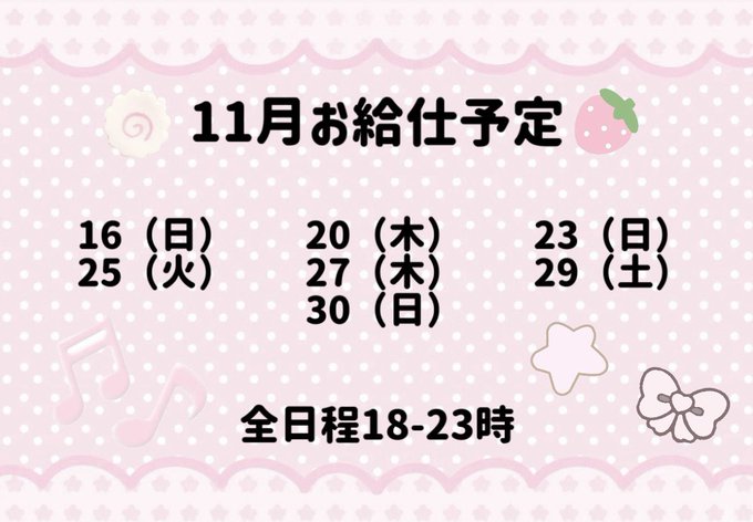 固定せな@amrm_67·11月の予定です〜❕みんな会いに来て(ˆ꜆ . ̫ . )꜆.ᐟ.ᐟ♡ #コンカフェ #池袋コンカフェ #池袋64