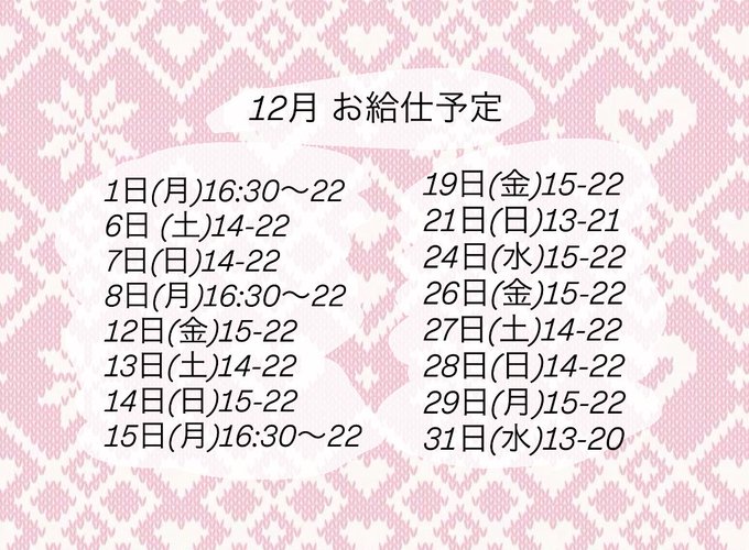 固定ゆう【Chérie bell 】@cherie_yuu_·11月残りのお給仕予定です❕( ˶ˊᵕˋ)੭371