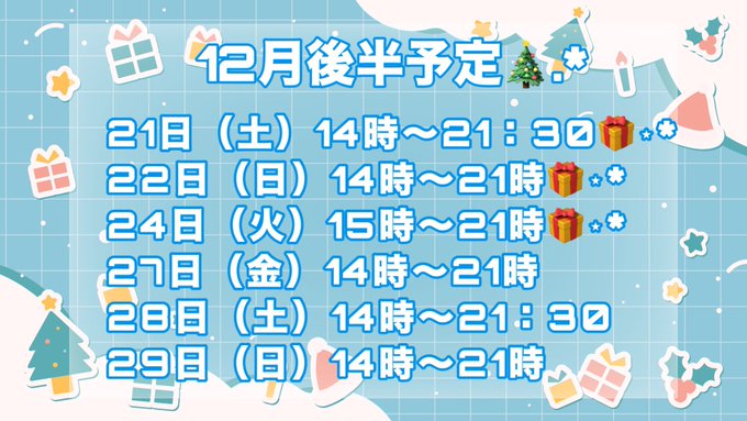ぷて(と-てノ)【Chérie bell 】@pute_cherie·⌇12月後半予定♬.*゚⌇ あと1週間ちょっとで2024年終わりだって( ;꒳; )💦 めっちゃびっくりだよ(*º ロ º *)‼️ 🎁⋆*のマークが書いてあるところはクリスマスイベントをやっている所だよ- ̗̀🎁 ̖́- 今年もあとちょっとだからぷておさめ(?)に会いに来てね꒰՞ ꜆ ܸ. . ܸ ꒱꜆🎀🤍13