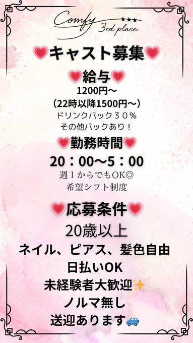 chinaさんがリポストcomfy ~3rd place ~@comfy_hiroshima·\ 女の子 募集中 / 未経験者大歓迎✨ お酒が飲めなくても大丈夫🙆 体験も可能です🫧 ダーツ、カラオケ完備🎯 DMやメールでお気軽に質問などお問い合わせください☺️ 詳しくはコチラ💁 https://caferun.jp/shop/12111/ comfy3rdplace@gmail.com📩773,598