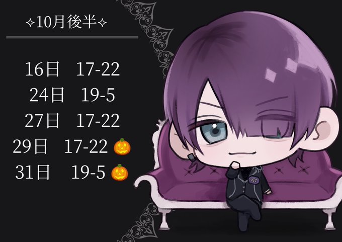 固定ノア✝️ビジュラム福岡天神@bjlmfuk_noa·10月後半† 16日 17-23 17日 21-5 18日 21-5 19日 17-23 21日 17-23 22日 17-23 24日 21-5 25日 21-5 26日 17-23 28日 17-23 29日 17-23 ハロウィン🐺 30日 17-23 ハロウィン🐺 31日 21-5 ハロウィン🍼 ビジュハロ楽しもう( ᜊº-° )ᜊ19612
