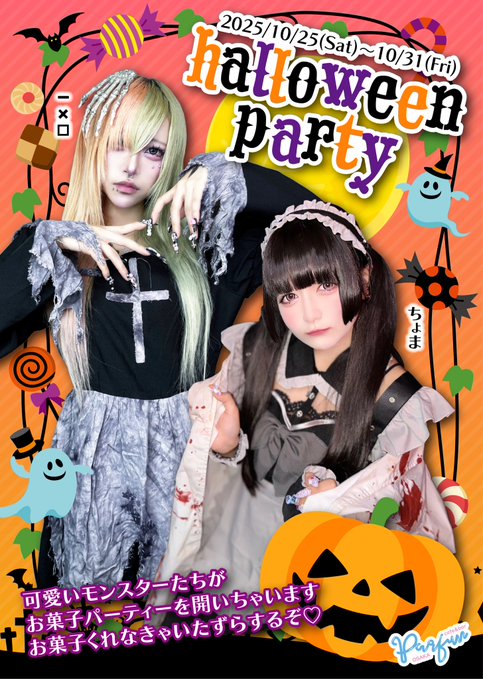 パルファン大阪店┃日本橋💐9/20グランドオープン❕@par_0808·パルファン大阪から20時のお知らせです📢♡ ハロウィンイベント盛り上がってます👻🎃 まだまだ23時までたくさんのご入国お待ちしております🎶0:31131
