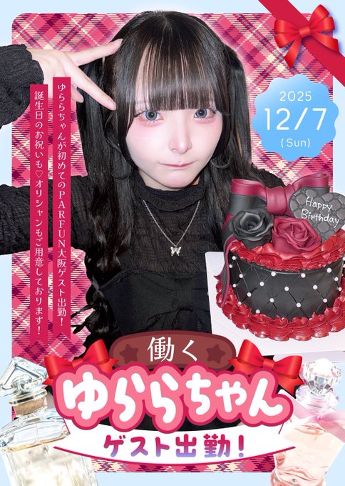 星宮つき@PARFUN大阪さんがリポストパルファン大阪|日本橋🧚香水の妖精コンカフェ@pfosk_0920·✧・゚:* Special Eventのお知らせ *:・゚✧ 【 働くゆららちゃんさんゲスト出勤 】 2025/12/7(日)17:00-23:00 働くゆららちゃんさん (@yuzuriha_nyan ) がパルファン大阪 にゲスト出勤👾🐾 パルファンスペシャルゲスト月間第一弾🫧✨ このスピード感についてこれるかな❔ #コンカフェ #ゲスト出勤24360