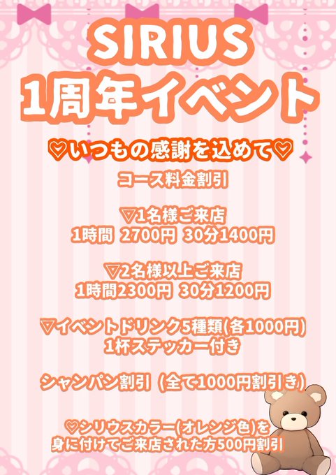 コスプレBAR SIRIUS@SIRIUSKouenji·告知!! 10/7(火)、10/8(水) SIRIUS周年イベントです🎉 是非日頃の感謝をお伝えさせてください!!! ど平日ですが、よろしくお願いします🙇♀️35167
