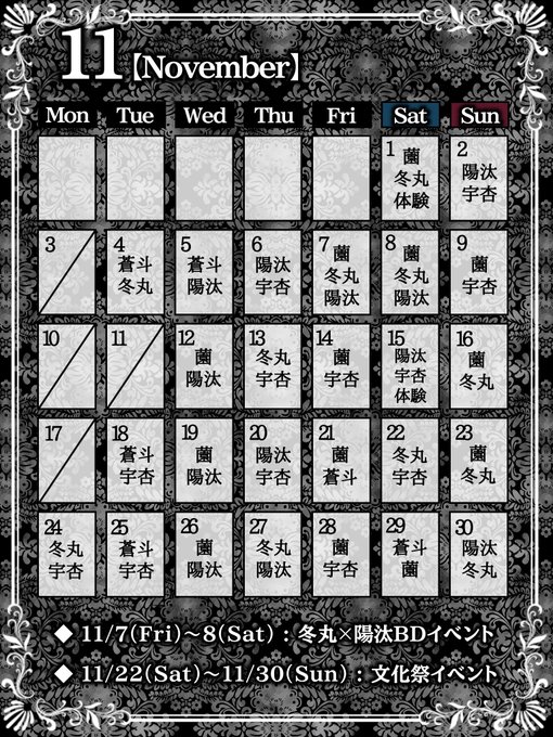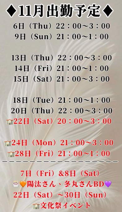 固定宇杏@ukyo_mirage·11月もよろしくお願いシマス🙌 文化祭イベントに陽汰サン冬丸サンのバースデーもありマス🎉481