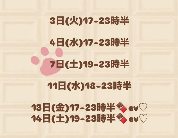 渚@nagisari_·◇2ガツ前半登校予定◇ 3火16-23 4水16-23 6金16-26 7土13-23 10火16-23 11水13-23 13金16-23 🍫 14土13-23 🍫 🍫… バレンタインEV(私服登校)♡ ✧書いてある日以外も登校できます ✧DMから来店予約もできます👍🏻25