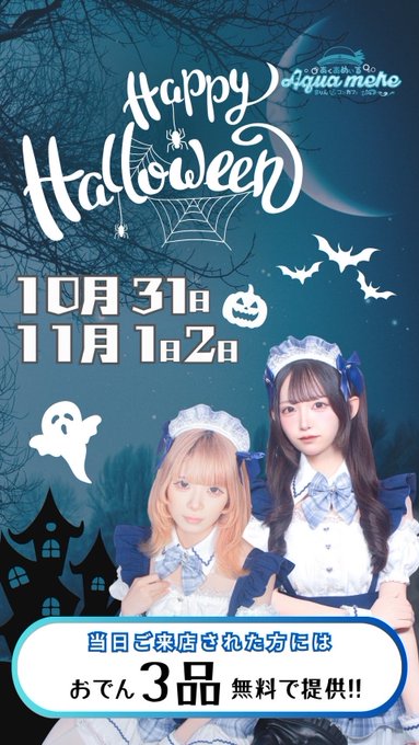 🫧*・あくあめぃる・*🫧岡山コンカフェ@aqua_mere·⚓️本日のお給仕⚓ 💙@coco0_0nya 🩵@Y1gJk9 💙@rr_amane_xx 🩵@unyon_potsu9 20時〜𝑳𝑨𝑺𝑻🫧 ハロウィンイベントです、お待ちしております🧜🏻♀️🪸 #岡山コンカフェ #岡山 #コンカフェ5105