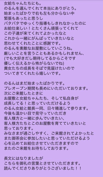 藤宮さをり💜喫茶のるんさんがリポストのるん🫖岡山コンカフェ@norn_okayama·今後について御一読お願いいたします。 ご来館を予定してくださっていた客人様にはご迷惑、ご心配をおかけして申し訳ございません。 のるん運営一同8198,170