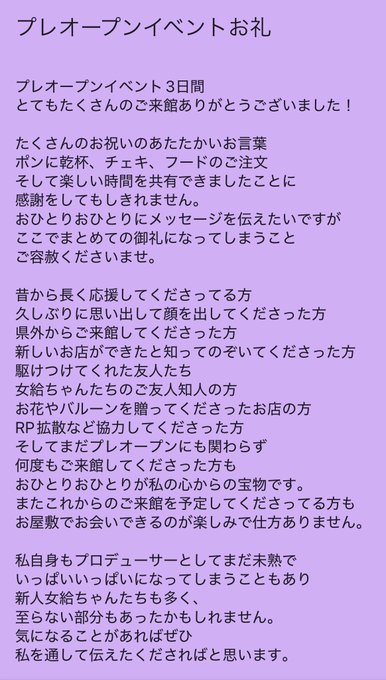藤宮さをり💜喫茶のるんさんがリポスト藤宮さをり💜喫茶のるん@norn_sawori·3日間の御礼です! 文書だと固く長くなっちゃいがちなんだけど、それもさをりらしいな〜と思って読んでいただけたら。 私ののるんへのお気持ち表明でもあるので、RPもしてくれたら嬉しい 次の開館は11/7(金)17時〜、そして土日11時〜24時となっております。 客人様方のご来館心よりお待ちしておりますのるん🫖岡山コンカフェ36293,049