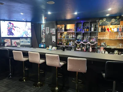 カウンター越しでのお客様へのドリンク提供。その他、チェキなどの写真撮影などの提供もあり。カラオケ設備完備。