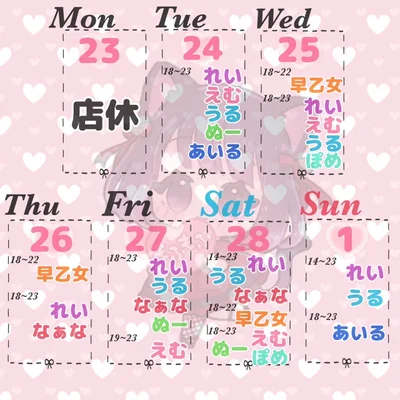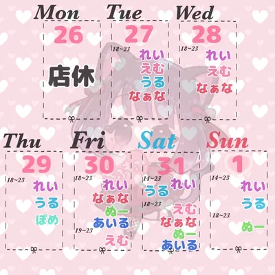 1月27日 21:48 / 出勤 🎀1月26日〜2月1日🎀
