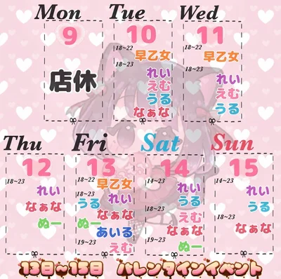 2月9日 1:54 / 出勤 🎀2月9日〜15日🎀