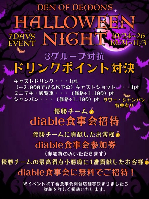 小悪魔カフェ diable 😈福岡天神 コンカフェ ディアブル@diable0610·【⋆͛📢⋆お知らせ⋆͛📢⋆】 🎃急遽ハロウィンゲスト🎃 にゃちぽぽ@popo_chuu_ 🩷10/31 🩷21:00-last36283