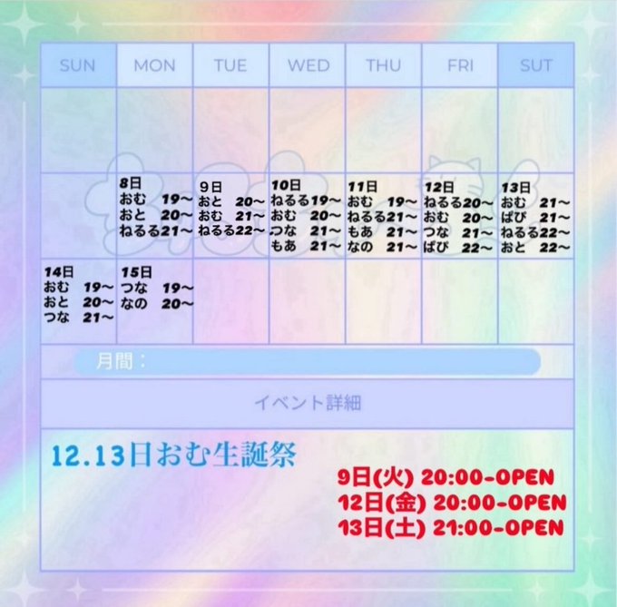 concept cafe【ちゅるちゅ〜る】さんがリポストつなマヨ@ne_ko___ii·おまたせした!!!! 12月後半のシフトです!!! 今日明日は大好きなおむおむのバースデーなので、めちゃめちゃ気合入ってるし盛大にお祝いしたいので行けない理由考える前に店集合で😻👊🏻 クリスマスイベントもあるから予定空けといて!!🙂↕️🌟15477