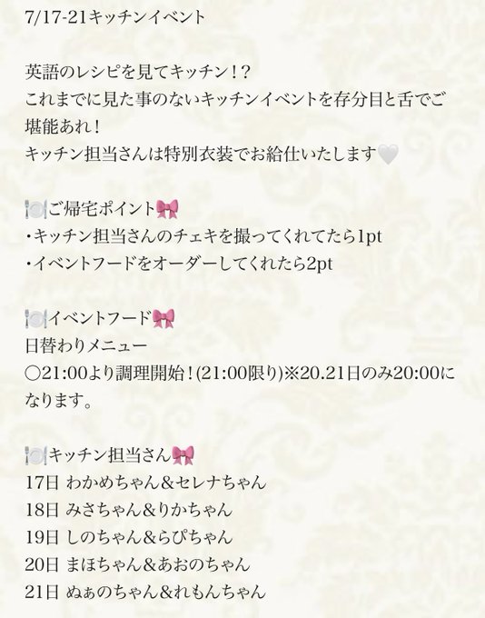 🐻お給仕予定🐰 11日(火) 20:00~短め 12日(水) 20:00~短め 14日(金) 20:00~短め 15日(土) 16:00~長め 16日(日) 16:30~長め ご帰宅お待ちしております🙇♀️
