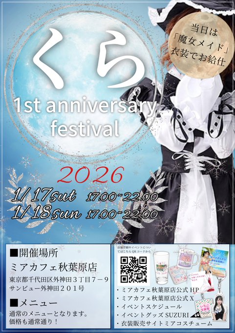 【公式】 秋葉原メイドカフェ ミアカフェ秋葉原店 🌸 メイドリフレ 撮影会 ミアリラ&フォト東京店さんがリポストMaid cafe "MiaCafe"since2004(TOKYO/KOFU/SHIZUOKA)@miacafe_japan·🎂🖤 Kura 1st Anniversary Festival at Mia Café Akihabara 🪄🎂 We’re excited to announce Kura-chan’s Birthday & 1st Anniversary Event at Mia Café Akihabara! 🏰💖 ▼ About Kura-chan 🩷X https://x.com/miamaid8 💙Profile https://pandaland.cutegirl.jp/mif/c_cms_csv/prof.php?page=342… 🧡ONLYFIVE https://only-five.jp/creators/4967さらに表示3455