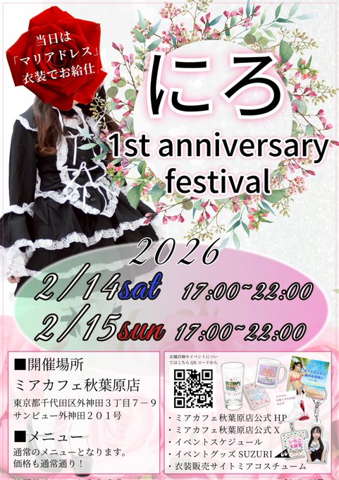 【公式】 秋葉原メイドカフェ ミアカフェ秋葉原店 🌸 メイドリフレ 撮影会 ミアリラ&フォト東京店さんがリポストにろ 秋葉原 メイドカフェ ミアカフェ秋葉原店 + 撮影会&メイドリフレ ミアリラ&フォト東京店@miamaid212·📣お知らせ 少し早めの告知になってしまうんですが2026年の2月14日と2月15日に1周年イベントやらさせていただきます‼️💓お時間ある方是非きてくださあああい🥹いつもの500倍は頑張ります☺️元気100億%にろでお待ちしてまああああす‼️3375